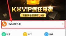 K米是移动点歌神器,只要你下载了这款APP,在KTV包厢唱歌时即可直接在手机上点歌了,操作起来也是非常的方便。那么我们该如何连接K米到包厢呢?请看具体方法。连接包厢的方法: 1、首先需要登录k米,然后在【点歌】的页面找到【扫码连接包厢】: 2、然后用户找到点歌台上的“手机点歌”,然后点击并用k米扫码即可连接包厢。 以上就是小编为大家介绍的连接包厢的方法,希望对大家有所帮助。