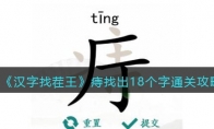 汉字找茬王是一款抖音上很火的文字闯关游戏,最新关卡痔找出18个字怎么过?痔是一个常见汉字,属于左上包围结构,部首是病字旁,一共有11笔。下面是3DM小编给大家带来的《汉字找茬王》痔找出18个字通关攻略,感兴趣的小伙伴们一起来看看吧,希望对大家有帮助。
