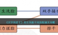 汉字找茬王是一款文字闯关游戏,最新关卡男女洗脸不同流程怎么过?这一关是按顺序连线关卡,大家需要根据洗脸流程,连出正确顺序。下面是3DM小编给大家带来的《汉字找茬王》男女洗脸不同流程通关攻略,感兴趣的小伙伴们一起来看看吧,希望对大家有帮助。