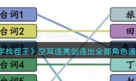 汉字找茬王是一款有趣的益智游戏,适合在休闲时间玩耍,大家在抖音搜索【汉字找茬王】即可去体验该游戏!目前已经更新了几百关,其中最新关卡空耳连亮剑连出全部角色怎么过?这一关是让大家听亮剑的经典台词连线角色。下面是3DM小编给大家带来的抖音小游戏《汉字找茬王》空耳连亮剑连出全部角色通关攻略,不清楚如何过关的小伙伴们一起来看看吧。