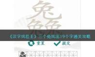 汉字找茬王游戏是抖音上热火的文字闯关游戏,其中关卡三个兔找出19个字怎么过?这一关三个兔读fu,字 是“䞯”字的异体字,需要在这个字中找出十九个汉字。下面是3DM小编给大家带来的抖音小游戏《汉字找茬王》三个兔找出19个字通关攻略,不清楚如何过关的小伙伴们一起来看看吧。>>>>>《汉字找茬王》全关卡通关攻略大全