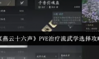 燕云十六声PVE治疗流武器心法怎么选?燕云十六声里面很多人都想要玩下这个PVE了呢,那么要是想要走治疗流的搭配的话就可以选择适合的武器和心法去玩了,所以今天就给大家带来推荐的方案了,具体的玩法思路要是不会的下面一起来看看吧!《燕云十六声》PVE治疗流武器心法选择攻略主武器扇子,副武器伞因为目前游戏里只有伞和扇子是有治疗武学的所以纯奶只能这么搭配,不过纯奶在自己推图时候会稍稍难受,建议可以多培养一个无名剑法或者九重春色,也就是半奶半输出这样自己的游戏体验也能有所保障。心法推荐(必选)这三个必选没什么好说的,都可以增加自身的治疗效果,并且可以白嫖。备选有易水歌直接选就行,没有易水歌就在下面两个选择。征人归:能够增加治疗效果,但是被碰一下就没了还得额外受伤。指玄篇注:只对复活有用,局限性太大。以上就是3DM小编整理带