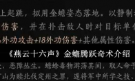 燕云十六声金蟾腾跃奇术怎么样?这个技能调息的时间大概是8秒,但玩家对于这一个技能了解并不是很多,例如有什么样的技能效果,又应该如何来获取?玩家如果想知道的话,不如就看一下接下来的介绍。《燕云十六声》金蟾腾跃奇术介绍玩家可以模拟金蝉翻身的样子,把附近的敌人全部的打退,而且还可以造成50.96%的外攻击,与此同时还会有其他的属性伤害以及七点外功伤害。玩家也可以朝着目标扑过去,如果命中的话就可以造成305.74%的伤害。并且在触发翻身之后可以后退。玩家还可以通过连续点击的方法释放出两次扑击,每一次扑击全部都会额外的消耗15点精元值,而且全部都会有一个蟾毒效果。当第3段的技能直接变成金蝉压顶之后。玩家就可以从高处跳起,然后朝着下面砸下来,会造成458.61%的外功伤害,还有70点的外功伤害以及其余的属性伤害。与此同时还