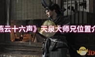 在燕云十六声游戏中天泉大师兄位置来一个大树底下,我们在完成九流门假冒天泉门的入门任务时,就可以看到它,接着我们提交3个不义之财以及200个四海笺就可以加入天泉门。那么下面就让小编给各位玩家们详细的介绍一下天泉大师兄位置吧。 《燕云十六声》天泉大师兄位置介绍一、位置介绍1、在一个大树地下,我们跟随任务指引就能找到。2、真正的天泉大师兄,需要我们在完成假冒的天泉入门任务。3、当的是天泉长老的名字是天泉,拜师的是九流门后,选择“不满意我要退出”。4、接着和九流门的天泉长老以及一名九流门弟子打一场,并将他们全部击败。 然后打开旁边的宝箱,获得一个不义之财。接着我们返回当时向天泉大师兄索要一大堆珠宝的哪个大树底下。 就可以发现真正的天泉大师兄张一豪了,完成它的要求就可以拜师天泉门。拜师天泉门需要3个不义之财以及200个四