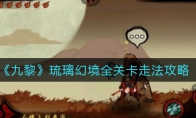 《九黎》游戏中琉璃幻境很多玩家不知道走法路线是什么,那么今天小编就给大家介绍一下九黎琉璃幻境全关卡走法攻略,有需要的小伙伴不要错过了。 《九黎》琉璃幻境全关卡走法攻略 1、第一关只有三个门,因此不重复是213,第三关是字谜,王的“一直去了”是三,下的“卜落”是一,天的“人在何方”,人找不到是二。詈的“言去不回”是四,结合第一关路线是213124。第五关是谜语,谜底是落叶,因此跟着落叶走就行2、六道与过图从常羊山开始对应,六道难度低于过图。3、炼狱难度全优不需要太高配置,四万七的攻击力即可。4、随身带20个道具全用完可以加六百评分,结合300以上的连击300分和过关100分,再怎么不济拿优也毫无压力。5、血涸光舞有无敌时间,站在流浪剑客倒地处使用可以用于对付其敏捷的身法6、第九个法宝配合第二个法宝,再结合无
