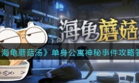 海龟蘑菇汤是一个脑洞推理游戏。玩家围绕汤面进行提问,我回答:是、不是、不重要。玩家需要根据回答逐步缩小真相范围,直到推理出完,整的事件真相。游戏中很多小伙伴想知道,海龟蘑菇汤单身公寓神秘事件怎么过,答案是什么呢?下面是3DM小编给大家带来的《海龟蘑菇汤》单身公寓神秘事件攻略答案,感兴趣的小伙伴们一起来看看吧。 海龟蘑菇汤单身公寓神秘事件攻略答案单身公寓神秘事件我最近住进了一家单身公寓。这几天,我总感觉桌子上的东西被人动过。于是,我睡前用手机给桌子拍了一张照片。早上,我在桌子前面看昨天拍的照片,发现桌子上东西的位置果然和照片上不一样了,我吓得面如土色。难道有人在我睡觉时进了我家?第二天,我管邻居要了几个啤酒瓶,倒放在门和窗户下面。如果有人进来,就会碰倒酒瓶,发出声音。晚上,我被酒瓶的声音吵醒了,发现自己正站在门口