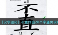 汉字进化是近期抖音火爆的一款益智闯关游戏,游戏中奀找14个字怎么过?这一关对于数字汉字没有要求,难度有所降低,大家可以找到更多字。下面是3DM小编给大家带来的《汉字进化》奀不大找14个字通关攻略,感兴趣的小伙伴们一起来看看吧。>>>>小编推荐:抖音《汉字进化》游戏攻略大全 >>>>>相关推荐:抖音最近很火的文字游戏攻略大全 《汉字进化》奀不大找14个字通关攻略1、奀找14个字分别有:不、丿、丨、丶(zhǔ)、下、卜、丅、丆(hǎn)、大、人、丕、一、二、奀(ēn) 2、奀的读音是ēn,上面是一个不字,下面是一个大3、不字包含一、丿、丨、丶,右半边是一个卜,去掉两边是丅,去掉右半边是丆(hǎn)字,不字下面加一横是丕4、大字中包含一个人字,剩余还有一个二字,