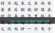 汉字大乐斗是抖音上很有名的文字解谜游戏,有非常多值得挑战的关卡,游戏中找出搞笑语录怎么过关?找出搞笑语录有好几关,下面是3DM小编给大家带来的《汉字大乐斗》找出搞笑语录通关攻略答案分享,感兴趣的小伙伴们一起来看看吧。 《汉字大乐斗》找出搞笑语录通关攻略汉字大乐斗找出搞笑语录:1、好看的皮囊你养不起2、有趣的灵魂看不上你3、先期末之忧而忧4、后期末之乐而乐5、我刚扇了钱包一下希望它肿起来6、异地恋就好像在手机里养了一只电子宠物。 以上就是3DM小编整理带来的抖音游戏《汉字大乐斗》找出搞笑语录通关攻略分享,更多关卡攻略,请点击关注3DM手游网,小编将持续为您更新!