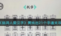 脑洞人爱汉字是一款考验玩家脑洞的汉字闯关游戏,游戏关卡不少,其中关卡黄找出21个字怎么过?这一关是拆字关卡,需要玩家从黄上面找出21个汉字后才可以过关。下面是小编给大家带来的《脑洞人爱汉字》黄找出21个字通关攻略分享,不清楚怎么过关的一起来看看吧。
