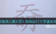 脑洞人爱汉字是一款考验玩家脑洞的汉字闯关游戏,游戏关卡不少,其中关卡国找出21个字怎么过?这一关是拆字关卡,需要玩家从【国】上面找出21个汉字后才可以过关。下面是小编给大家带来的《脑洞人爱汉字》国找出21个字通关攻略分享,不清楚怎么过关的一起来看看吧。