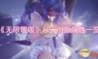 无限暖暖中有着众多精美华丽的套装,晶莹诗集套装由许多的服饰组成,寒天倒影就是其中之一,可以通过收集特定的材料来制作获得,那么下面小编带着大家一起来看看寒天倒影一览吧,感兴趣的小伙伴们快来看看吧,希望能够帮助到各位有需要的玩家们。《无限暖暖》寒天倒影属性一览一、寒天倒影少女把极光披在身上,翩翩起舞。晶莹的薄纱隐隐透出冷色的光,身影仿若自寒天倾泻而下的月色和星芒。典雅:S-769清新:SSS-2697甜美:SSS-5630性感:S-763帅气:S-689以上就是3DM小编整理带来的《无限暖暖》寒天倒影属性一览,更多相关游戏攻略,请关注3DM手游网!