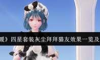 无限暖暖四星套装灰尘拜拜猫友效果怎么样?无限暖暖游戏今日开启公测,有很多小伙伴都很想知道无限暖暖四星套装灰尘拜拜猫友效果怎么样,所以今天小编就为大家带来了无限暖暖四星套装灰尘拜拜猫友效果一览,那有兴趣的小伙伴快来一起看看吧。《无限暖暖》四星套装灰尘拜拜猫友效果一览及获取方法正面侧面后面细节展示实景效果灰尘拜拜猫友时装描述为了记录和一只可爱衬衫猫在午后的惊喜邂逅,于是这身衬衫猫特别款套装诞生了!灰尘拜拜猫友时装属性灰尘拜拜猫友获取来源●主线获得套装后升级获取以上就是3DM小编整理带来的无限暖暖四星套装灰尘拜拜猫友效果一览及获取方法,更多相关游戏攻略,请关注3DM手游网!