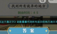 这不是汉字是抖音上一款趣味老少皆宜的热门休闲汉字闯关游戏,其中四合院砍价怎么过?图中有一座四合院,价格非常高,大家要拖动放大镜找到院子的问题。还没有通关的小伙伴们一起来看看《这不是汉字》四合院砍价用最低价买下这个院子通关攻略图文吧,希望对大家有帮助。>>>>>小编推荐:《这不是汉字》全关卡通关攻略大全《这不是汉字》四合院砍价用最低价买下这个院子通关攻略1、这不是汉字四合院砍价,需要用最低价买下这个院子,首先移动放大镜到房门前,找到灯笼、封条2、院子里可以找到棺材、鬼影和血迹,右边能够发现绳子3、屋顶上有人的痕迹,旁边的墙上有奠字4、最后在樱花树、树丛和太阳处找到问题,成交价-50000以上就是3DM小编整理带来的抖音小程序游戏《这不是汉字》四合院砍价用最低价买下这个院子通关攻略图文