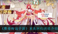奥奇传说手游即将在1月21日上线末炎回归活动。很多小伙伴都很想知道这个活动怎么样,今天小编给大家带来了《奥奇传说手游》末炎回归活动介绍。感兴趣的小伙伴一起来看看吧。《奥奇传说手游》末炎回归活动介绍活动时间:1月21日5:00-2月4日5:00活动内容:红莲女皇,重临奥奇!末炎挑战分为3个部分:烈火红莲、红莲绽放、红莲女皇。烈火红莲:1、使用系统精灵按顺序进行破阵,关卡次日5点重置;2、破阵胜利保留当前存活精灵血量;3、本关阵亡的精灵不可再次上阵(挑战失败阵亡精灵也会计入)。红莲绽放:1、使用自己精灵破阵,关卡次日5点重置;2、每击败1个敌阵,剩余关卡敌阵精灵增强;3、破阵胜利保留当前存活精灵血量;4、本关阵亡的精灵不可再次上阵(挑战失败阵亡精灵也会计入)。红莲女皇:1、女性精灵对末炎伤害提升100%;2、末炎血