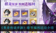 奥奇传说手游即将在1月28日更新后上线春节福利活动。很多小伙伴都很想知道这个活动怎么样,今天小编给大家带来了《奥奇传说手游》春节福利活动介绍。感兴趣的小伙伴一起来看看吧。《奥奇传说手游》春节福利活动介绍活动时间:1月28日更新后活动内容:群龙贺岁签到送豪礼,共计三波签到, 100级魔魂·暗影之子,梦之队神器自选第一波:1月28日更新后开启签到第1天:炼金石*10第2天:召唤券*20第3天:梦之队神器自选宝箱*1第二波:2月4日5:00后开启签到第4天:召唤券*10第5天:炼金石*20第6天:100级魔魂·暗影之子*1第三波:2月11日5:00后开启签到第7天:1级魔魂·暗影之子*1第8天:1级魔魂·暗影之子*1第9天:金色星神-无双*1以上就是小编整理的关于《奥奇传说手游》春节福利活动介绍的全部内容,更多游戏攻