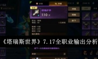 塔瑞斯世界7.17全职业输出怎么样?塔瑞斯世界7.17版本的话很多人对里面的职业的输出还是比较的好奇的,今天就给大家分析下输出职业的最高最低的伤害数值吧,这样玩的时候也心里有数了,那么大家要是好奇的话下面来看看吧!《塔瑞斯世界》7.17全职业输出分析输出职业 最高 最低战士 25090 20692火法 25546 21250冰法 24291 20356牧师 25093 20668毒贼 24480 20555决斗贼 77257 4390御兽 24623 20009狩猎 28886 20897独奏 25394 20775蛮子 36011 28111祭祀 24703 20348骑士 25285 20289最高是能代表一部分职业上限。最低基本上和玩家基数有关系。以上就是3DM小编整理带来的塔瑞斯世界7.17全职业输出分