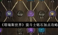 塔瑞斯世界蛮斗士铭石怎么加点?塔瑞斯世界是最近很受欢迎的开放世界手游,想必一定有很多玩家选择了蛮斗士这个职业,但是不知道蛮斗士的具体铭石加点。今天小编就给大家带了蛮斗士两条专精的铭石加点以及优先级,一起来看看吧。《塔瑞斯世界》蛮斗士铭石加点攻略一、雷鸣专精分支雷鸣专精的铭石树加点推荐如下:属性孔位优先级如下:连击>专注>全能=冷却>力量。注:狂雷之怒流派全能收益略大于冷却,雷斧乱舞流派冷却的收益略高于全能,但前期可优先堆全能。二、冰封专精分支冰封专精的铭石加点推荐如下:属性孔位优先级如下:耐力=偏斜>全能>专注>冷却>力量。注:选择2级专注1级全能会得到49.8的物理防御减伤与5.4的免伤,选择1级专注2级全能会得到,49.3的物理防御减伤与7.3的免伤。所以综合下来全