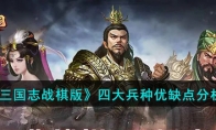 《三国志战棋版》游戏中玩家会有四大兵种可以选择,玩家在这四个兵种中可以选择一个兵种使用,不同的兵种会有不同的特点,可能有玩家还不清楚游戏中的四个兵种有什么优缺点,下面小编就给大家整理了具体的优缺点分析,一起来看看吧! 《三国志战棋版》四大兵种优缺点分析:兵种分析1.弓兵 三国志战棋版里弓兵造成伤害倍率是90%,受到伤害是120%,但是释放距离是4的优点可以让弓兵的输出环境非常的舒服。只要保护的好或者走位不失误,弓兵一般都不会成为最先被秒的人。并且弓兵的手长也让弓兵成为优秀的辅助,比如说弓兵带魅惑的效果比近战带好的多,或者带兵疲的郭嘉。并且在三棋里弓兵有一个主动战法加成百分之20,使得弓兵法师的输出更为优秀,只要弓兵不被贴脸秒,那就可以只享受增伤的福利而没有易伤的缺点。我也相信以后法师输出也会成为主流。一是手长施