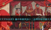 文字玩出花镜中新娘找出十二处细思极恐攻略来了!抖音文字玩出花小游戏最新关卡镜中新娘是一个图片关卡,图中是中式婚礼的场景,新娘蒙着红盖头,大家需要找出十二处细思极恐,包含嘴唇发黑、毒酒、纸钱、发簪、枯萎的花、颈部伤口、发霉贡品、两短一长、傀儡新郎、镜中世界、提线、手印。还没有找全的朋友,不妨来看看《文字玩出花》镜中新娘找出十二处细思极恐通关攻略,希望能帮助大家!
