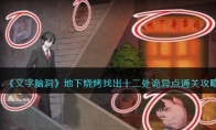 文字脑洞游戏是抖音上最近上线的文字脑洞闯关游戏,其中关卡地下烧烤怎么过?这一关大家需要找出十二处诡异点。下面是3DM小编给大家带来的抖音游戏《文字脑洞》地下烧烤找出十二处诡异点通关攻略分享,感兴趣的小伙伴们一起来看看吧。
