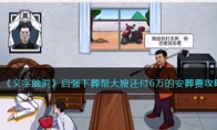 文字脑洞是抖音上非常有意思的文字解谜游戏,关卡启强下葬怎么过?这一关需要帮大嫂还付6万的安葬费,先把招魂铃拖动到棺材处,点击纸钱获得5折优惠。然后使用放大镜可以获得钻戒、私房钱、电瓶电池、电视芯片、ab钙奶、鱼摊合同、棺材、银行卡。下面是3DM小编给大家带来的《文字脑洞》启强下葬帮大嫂还付6万的安葬费攻略,感兴趣的小伙伴们一起来看看吧。