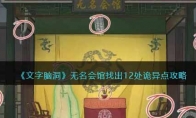 文字脑洞是抖音上非常有意思的文字解谜游戏,最新关卡无名会馆是一个找茬关卡,图中给出的是一个戏台,下方有两个“观众”,大家需要在图中找出12处诡异点。下面是3DM小编给大家带来的《文字脑洞》无名会馆找出12处诡异点攻略,感兴趣的小伙伴们一起来看看吧。