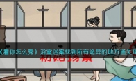 看你怎么秀小程序游戏是抖音上线的很火的休闲益智闯关游戏,其中关卡浴室迷案怎么过?这一个关卡需要找到所有诡异的地方,我们可以利用摄像机和放大镜。下面是3DM小编给大家带来的《看你怎么秀》浴室迷案找到所有诡异的地方通关攻略,感兴趣的小伙伴们一起来看看吧。
