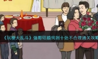 玩梗大乱斗是以文字解密为主题的休闲游戏,其中玩梗大乱斗强哥结婚怎么找到十处不合理?玩家需要在这个强哥结婚中找到十处当时不符的物品,包含大钻戒珍珠王冠水晶鞋彩带喷花幸福门 香槟塔高启强大嫂二维码摄像机偷拍。还没有通关的朋友一起来看看《玩梗大乱斗》强哥结婚找到十处不合理通关攻略吧! 《玩梗大乱斗》强哥结婚找到十处不合理通关攻略玩梗大乱斗强哥结婚提示:找到十处不合理答案:大钻戒珍珠王冠水晶鞋彩带喷花幸福门 香槟塔高启强大嫂二维码摄像机偷拍 1、这一关强哥的结婚现场,需要找到其中不会出现的物品,然后进行点击找到这些不对的物品。2、大钻戒、水晶鞋和珍珠王冠,那个时候可没有这么奢华的婚礼。3、这个摄像机偷拍,还有收钱的二维码都是不应该出现的。 以上就是3DM小编整理带来的《玩梗大乱斗》强哥结婚找到十处不