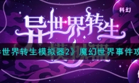 异世界转生模拟器2全部事件怎么完成?异世界转生模拟器2里面事件还是比较的多的,那么我们要是想全部达成的话是需要知道下完成攻略的,需要选择适合的选项才可以的哦,不会的来看看吧!《异世界转生模拟器2》全部事件完成攻略随机事件:抓周①木剑,力量+1②黑丝,挨- -耳光麻将提问,中局以后少二八:必有对子手中拿幺鸡不能打:一打就是俩百年雪莲:试试手气,立即出门,远处.观望,自己服用,力量+2,体质+2,智慧+2,试试手气,立即出门,远处观望,卖掉换钱,家境+5雪山灵气:雪地,直接吃雪,修为+1,体质-1酒馆女儿红事件:①.上前搭讪,体质+1,智慧+1②坐下点菜,体质+1,家境-1雪原山洞事件:①进入山洞,询问,体.质+3,智慧+2②进入山洞,沉默,体质+1,智慧加3③寻找出路,体质-1见白洛竹老婆(娃娃亲),看剧情随,便