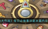 过副本获得包含钻石、抽奖券、神灯在内的诸多资源,因此清空所有副本挑战次数,是每天不可错过的环节。如果已经面临卡关,推荐进行副本扫荡,扫荡已通关的副本,也能获取对应通关奖励哦~《冒险大作战》每日必做事项副本篇内容一览菇勇者们可以通过副本获得包含钻石、抽奖券、神灯在内的诸多资源,因此清空所有副本挑战次数,是每天不可错过的环节。如果已经面临卡关,推荐进行副本扫荡,扫荡已通关的副本,也能获取对应通关奖励哦~副本密钥不够?别着急!除了自动刷新的副本挑战次数外,大家还可通过以下途径获取副本密钥。(以下途径并非全部获取方式,菇勇者们可多观察系列限时冒险活动哦~)1、完成全部【每日任务】,可以获取1个神灯密钥、1个钻石密钥;2、在游戏左上角-下拉菜单-幸运转盘中,每天有限量抽奖次数,每次抽奖都有概率获取副本密钥;以上就是3DM