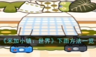 《米加小镇:世界》中天气是变化的,玩家们可以通过使用特定的道具来控制天气,只需前往工作室二楼找到机器即可,由于很多伙伴们不知道怎么下雨,下面小编就为大家带来详细的方法,感兴趣的一起来看看吧。米加小镇世界怎么下雨1、进入游戏,前往米加小镇工作室二楼。2、二楼有一个机器,找到后,按右边的两个箭头。3、会出现一个灰色的盒子,点击按钮就会下雨,再点击就会停止下雨。4、蓝色的盒子可以控制下雪,点击按钮就会下雪,再点击就会停止下雪。以上就是3DM小编整理带来的《米加小镇:世界》下雨方法一览,更多相关游戏攻略,请关注3DM手游网!