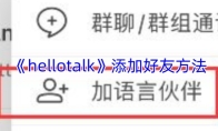 打开HelloTalk应用,在首页可通过搜索框输入对方ID、昵称等信息精准查找好友;也能在“发现”页面,根据语言、地区等条件筛选感兴趣的人,点击对方头像进入个人资料页,再点击“加为好友”,等待对方通过即可开启交流。hellotalk怎么加好友?1、打开app2、点击右上角的加号3、点击 加语言伙伴4、输入对方的 ID 号即可添加以上就是小编带来的hellotalk怎么加好友?hellotalk添加好友方法,更多相关资讯教程,请关注3DM手游网。