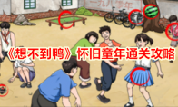 想不到鸭是抖音最近很火的休闲闯关解谜游戏,其中怀旧童年是想不到鸭游戏春节相关关卡之一,这一关我们需要在图中找出12个不合理的地方,大家具体怎么过呢?想必部分朋友还没有过关!今天3DM手游网小编给大家带来了《想不到鸭》怀旧童年通关攻略分享,需要的一起来看看吧!>>>>小编推荐:《想不到鸭》全关卡通关攻略大全 《想不到鸭》怀旧童年通关攻略怀旧童年目标:找出12处不合理的地方 1、注意远处很小的手机和监控2、双击蓝色衣服的男生,丢出个西瓜3、答案如下图所示: 以上就是3DM小编整理带来的《想不到鸭》怀旧童年通关攻略,更多关卡攻略内容,请点击关注3DM手游网,小编将持续为您更新!