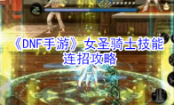 2020-06-10 阅读全文dnf手游女圣骑士技能怎么样?很多小伙伴不知道dnf手游女圣骑士技能怎么样。《地下城与勇士M》手游来自于端游DNF的移植,这是一款2D横版格斗手游,丰富的职业角色,精彩的剧情任务,还有玩家喜爱的深渊挑战都进行的完美的还原。下面小编给大家带来《DNF手游》女圣骑士技能连招攻略,希望能帮助到小伙伴们哦。 《DNF手游》女圣骑士技能连招攻略1、忏悔之雷,召唤雷电攻击前方范围区域自身进入霸体状态,这个技能非常牛批PK场里可以破保护,直接再打一套。2、神光十字,就是超大十字架锤地跟男圣骑士一样,伤害非常爆炸。3、接下来就是重点了,觉醒技能圣光天启这特效,你确定不是闪金光出货了?刚看到这画面的时候我就突然一激动想看看出了啥这要是组队奶妈打深渊那不得把把先激动一手这个觉醒技能即增幅队友又能有魔攻伤害。 以上是《DNF手游》女