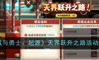 新年的脚步近了,伴随着新春版本的到来,各项福利活动也如约而至,带来的不仅仅是各种新活动,福利也是各种送送送!今天来盘点一下新春版本活动,带来的都有哪些福利?又该如何参与?天界跃升之路活动时间:2024.11.27~2025.02.19.54级以下角色不仅有经验值200%加成,达成对应等级也有大量道具奖励。以上就是3DM小编整理带来的《地下城与勇士:起源》天界跃升之路活动内容一览,更多相关游戏攻略,请关注3DM手游网!