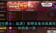 2025-01-15 阅读全文新年的脚步近了,伴随着新春版本的到来,各项福利活动也如约而至,带来的不仅仅是各种新活动,福利也是各种送送送!今天来盘点一下新春版本活动,带来的都有哪些福利?又该如何参与?宠物装备洗炼属性转移活动活动时间:2024.12.25~2025.03.19.可以将罗特斯宠物装备的属性转移到混沌秩序之使徒宠物装备上,需要消耗一定量的秘能之牙材料和金币。以上就是3DM小编整理带来的《地下城与勇士:起源》宠物装备洗炼属性转移活动内容一览,更多相关游戏攻略,请关注3DM手游网!