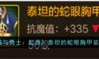 泰坦的蛇眼胸甲是《地下城与勇士:起源》中的50级上衣位置的史诗皮甲散件,可以通过深渊掉落和近期开启的团队模式BOSS获取,那么接下来就让我们一起了解一下泰坦的蛇眼胸甲具体有着什么样的属性和效果吧。 《地下城与勇士:起源》泰坦的蛇眼胸甲图鉴1.装备介绍 「泰坦的蛇眼胸甲」Lv.50 皮甲 - 史诗 - 上衣获取方式:制作、委托、深渊派对、道具“我还是第一次遇见如此坚固的石巨人。——黑夜术士,看着泰坦说”2.属性效果 【基本信息】抗魔值:+335物理防御力 +2702力量+25 智力+25 体力+29【效果】① 进入地下城后,每1000物理防御力,增加12点物理攻击力。(最多增加48点)② 进入地下城后,每1000魔法防御力,增加12点魔法攻击力。(最多增