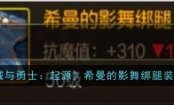 希曼的影舞绑腿是《地下城与勇士:起源》中的50级下装位置的史诗布甲散件,可以通过深渊掉落和近期开启的团队模式BOSS获取,那么接下来就让我们一起了解一下希曼的影舞绑腿具体有着什么样的属性和效果吧。 《地下城与勇士:起源》希曼的影舞绑腿图鉴1.装备介绍 「希曼的影舞绑腿」Lv.50 布甲 - 史诗 - 下装获取方式:制作、委托、深渊派对、道具2.属性效果 【基本信息】抗魔值:+310物理防御力 +1876智力+92 精神+32【效果】① 生命值在80%以上时,自身生命值减少7%(冷却时间10秒) 以上就是3DM小编整理带来的《地下城与勇士:起源》希曼的影舞绑腿装备图鉴,更多相关游戏攻略,请关注3DM手游网!
