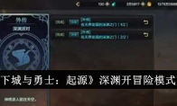 地下城与勇士起源深渊怎么开冒险模式?地下城与勇士起源手游中,游戏中有着丰富的游戏玩法,不同的游戏模式玩法。其中的冒险模式,不少玩家还不是很了解。这里为大家带来冒险模式的详情介绍,想了解的玩家快一起来看看吧!《地下城与勇士:起源》深渊开冒险模式方法1、当角色到达48级完成外传任务“在天界发现的深渊之门”之后,就能开始体验深渊临界模式了。2、点击屏幕右侧委托,选择特殊,然后选择深渊临界选项即可开启挑战深渊派对模式。深渊模式提供部分经验值,48级以上做完主线任务的话,可以通过深渊临界边刷装备边升级。3、进入副本后,只需要根据地图提示,消灭领主所在房间内所有的怪物即可,有几率获得史诗装备、宇宙灵魂和不同部位的深渊精粹。4、获得的深渊精粹是非常重要的史诗装备制作材料,1000个相同部位的深渊精粹可制作指定部位的史诗装备。