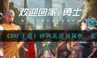 在dnf手游中碎风乱波剑是一把50级史诗武器,很多小伙伴都很想知道这把碎风乱波剑怎么样,今天小编给大家带来了《DNF手游》碎风乱波剑属性一览。感兴趣的小伙伴一起来看看吧。《DNF手游》碎风乱波剑属性一览碎风乱波剑基础信息*物理攻击+582*魔法攻击+706*智力+43*施放速度+2%*移动速度+7%*魔法暴击率+2%*命中+214效果*攻击10%概率在10秒内增加10%智力(冷却10秒)攻击20%概率在20秒内增加7%魔法攻击(冷却20秒)鬼剑士:* [地裂波动剑]等级+3以上就是小编整理的关于《DNF手游》碎风乱波剑属性一览的全部内容,更多游戏攻略请持续关注3DM手游网!