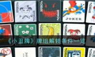 小丑牌传奇小丑牌怎么收集?小丑牌作为一款以扑克牌玩法为衍生的手机游戏,游戏中有很多不同的牌组,玩家在游戏中可以收集各种各样的卡牌,让玩家在后续对战中进行自由构筑,很多玩家在游戏中发现自己最后五张牌没有,不知道该如何去收集,小编接下来就为大家介绍一下这几张传奇小丑牌的收集方式,还不清楚的玩家可以参考一下攻略内容,希望对大家有所帮助。 《小丑牌》传奇小丑牌收集攻略作为五张传奇的小丑牌收集目前只能通过隐藏幻灵牌灵魂来得到。其中最后一个小丑牌需要所有小丑牌都获得右上角的金标,也就是在卡组解锁金注后,在金注模式下底注到达8之前拿着其中的小丑牌过关。该隐 效果:每摧毁一张脸牌则永久增加x1倍率特里布莱特 效果:King(K)和Queen(Q)给予x1.5倍率约里克 效果:在23次弃牌后触发x5倍率奇科特 效果:Boss盲注