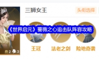 在《世界启元》是一款深度策略类SLG手游,这款游戏中,想要组建一个好的阵容,意味着你需要一个能够随着战斗进程增强自身,造成伤害的同时还能获得增益或回复的队伍。接下来一起看看《世界启元》蔷薇之心追击队阵容攻略!阵容主要角色是三狮女王、雄狮王和铁公爵。>>>《世界启元》越打人越多阵容搭配推荐>>>《世界启元》女王无限追击队阵容搭配攻略《世界启元》蔷薇之心追击队阵容攻略蔷薇之心追击队命运羁绊·【蔷薇之心】的追击队阵容。当前版本的主流阵容中,三狮女王、雄狮王和铁公爵的出场率都比较低。但这并不代表他们就弱,今天就带大家来解析一下。1、核心思路首先来说一下队伍的核心:三狮女王的自带技能【王冠】。战斗的前四回合,提升自身与一名友军的追击伤害,更厉害的是,能够让友军有70%概率额外进行一次普