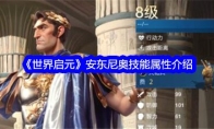 今天给大家带来了《世界启元》安东尼奥技能属性介绍,安东尼是一位肉盾英雄,防御属性很高,他是保护c位的好手,如果你的c位经常遭到威胁那么可以尝试一下他。安东尼奥是一位坦度极高的英雄,作为前排可以让后排非常的安心,是核心c位的最佳独挡。《世界启元》安东尼奥技能属性介绍一、基础属性安东尼奥作为以防御能力见长的英雄,攻击能力也异常出色。初始就有着高达101的防御和99的攻击,作为一名肉盾英雄,初始攻击力甚至比一些攻击英雄要高。安东尼奥擅长使用近战兵种,攻击距离为3。通常在不同时代搭配防御型或攻击型近战。好比在工业时代的火鸦小队就是防御型近战单位非常适合,根据打法流派进行调整。二、英雄特性原型作为凯撒死后继以大任的马克安东尼的安东尼奥,,安东尼奥的专属头衔一样能独挡一面,属性都相当给力。其中专属头衔·同盟契约可以为我们同