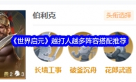 2024-06-25 阅读全文在《世界启元》这款游戏中,想要组建一个好的阵容,意味着你需要一个能够随着战斗进程增强自身,造成伤害的同时还能获得增益或回复的队伍。这里有一个好玩的阵容还能够越打人越多,下面来看看《世界启元》越打人越多阵容搭配推荐吧! 《世界启元》越打人越多阵容搭配推荐 1、越打人越多的阵容介绍这套阵容的核心是伯利克!在更新之后他的自带技能【长墙工事】增加了一个反叛效果,可以让进入这个状态的敌军受到伤害时,攻击者恢复一定的兵力。而触发这个效果就需要我军全体对敌军累计造成6次伤害,所以搭配上雷庇达乌斯和征战王就可以更快的触发这个技能。 自带技能【长墙工事】是阵容的核心,在我军全体对敌军全体累计造成6次伤害时,可以随机对1名敌军再打一次伤害,还可以让其进入反叛状态。是我们队伍越打越多人的关键 【雷庇达乌斯】具有比较高的智力属性,在队
