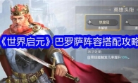 世界启元游戏中巴罗萨作为五星传奇英雄,获取方式较为困难,仅能从高级招募卡池和专属限定卡池获取。很多小伙伴想知道巴罗萨阵容怎么搭配?下面是3DM小编给大家带来的《世界启元》巴罗萨阵容搭配攻略,感兴趣的小伙伴们一起来看看吧。 《世界启元》巴罗萨阵容搭配攻略阵容搭配雄狮王+乔瓦娜+巴罗萨这套阵容属于强输出类型的追击阵容,雄狮王加上乔瓦娜本身就是追击多伤流的代表,巴罗萨加入后可以担任前锋位给两名核心角色进一步提升输出。推荐巴罗萨使用输出流技能在这套阵容中。 以上就是3DM小编整理带来的《世界启元》巴罗萨阵容搭配攻略介绍,更多精彩内容,请点击关注3DM手游网!