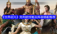 世界启元游戏中玩家开局选择文明后,会对应产生专属的英雄文明卡池。古埃及文明英雄金色英雄包括:克利欧、戴维王、吉加美士、斯基泰女王、法老王、苏玛。卡池紫色英雄包括:阿肯那顿、娜芙、哈蒙及其他三名散将。其中克利欧与其他文明卡池不重复,辅助英雄,步兵,普攻距离3!接下来给大家带来了《世界启元》克利欧技能及阵容搭配推荐,一起了解下吧!>>>《世界启元》古希腊文明卡池英雄特点及搭配推荐>>>《世界启元》华夏文明卡池英雄特点及搭配推荐《世界启元》克利欧技能及阵容搭配推荐克利欧(其他文明卡池不重复)辅助英雄,步兵,普攻距离3技能为【女神在世】,开场技能,距离4,100%发动,三回合内让对面所有男人输出降低和受到伤害增加。稳定的开场技能,但缺点只能对男人生效,有点遗憾。技能价值高,虽然只有三