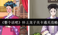 整个活吧怀上龙子关卡怎么通关?有很多小伙伴都很想知道整个活吧怀上龙子关卡应该怎么通关,所以今天小编就为大家带来了整个活吧怀上龙子关卡通关攻略,那有需要的小伙伴快来和小编一起看看吧。《整个活吧》怀上龙子关卡通关攻略1、【人参】给华妃、【益母草】给嬛嬛;2、【大餐】给华妃、【健康饮食】给嬛嬛;3、【雇佣契约】给华妃、【扫把】给嬛嬛;4、【贡品】给华妃、【安神香】给嬛嬛;5、【龙子扶持计划】给华妃、【作息计划表】给嬛嬛;6、【小说话本】给华妃、【养胎书籍】给嬛嬛;7、【邀请函】给华妃、【太医令】给嬛嬛;以上就是3DM小编整理带来的整个活吧怀上龙子关卡通关攻略,更多相关游戏攻略,请关注3DM手游网!