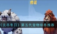 《无尽冬日》第五代宠物哪个好?第五代宠物出场已经相当晚了,很多小伙伴可能也不太想再养新宠物了,那么第五代宠物到底有没有逼着大家培养的价值呢?一起来看无尽冬日第五代宠物全方位解析吧! 无尽冬日第五代宠物培养推荐1、第五代宠物:雪猿和洞狮。 雪猿的技能势如雪崩,增加出征部队数量,对普通人来说意义不大,因为这时候大家都兵强马壮了,拉满了也只能去撞矿,人家家里都蹲着几十万兵呢。所以没必要拉太高。洞狮的野性咆哮技能,提高攻击力,可以根据需求适当拉一下。2、宠物养成规划零氪微氪玩家就选:洞斑鬣狗、麝牛、大角鹿。氪佬就选:泰坦巨鸟、雪豹、雪猿、洞狮。北极狼和巨貘嘛,建议后期上面提到的宠物都满级了再培养,因为它们俩的技能有点儿鸡肋,对你帮助不大。以上就是3DM小编整理带来的《无尽冬日》第五代宠物培养推荐,更多相关游戏攻略,请关