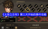 大侠立志传是一款集合了复古像素风格与开放世界元素的武侠角色扮演游戏,手游版中目前处于测试中,其中第三天开始的事件怎么过?接下来给大家带来了《大侠立志传》第三天开始的事件攻略,一起来了解一下吧! 《大侠立志传》第三天开始的事件攻略第三天开始的事件辰时前后,进入客栈会碰到泼皮,选择“胖爷,赔您500文钱请消消气”,智慧+5、名声+10;选择“对付找茬的人不必讲道理”,则与泼皮进行战斗。打赢后勇气+2、名声+10;战败后失去全部金钱;选择“这里没我啥事,先回避一下”,花四娘关系降低30点。......窗外黑影事件 子时至丑时进入客栈,与泼皮进行战斗,打赢后可邀请花四娘入队,获得丙级外功花拳绣腿+花四娘的钥匙;......其他事件 1、嫁妆:乙级饰品玉辟邪(小神器)2、烦恼:王大锤事件触发后可接,2000铜钱。事后王大