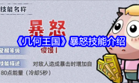 《几何王国》目前英雄觉醒1技能为独立技能,觉醒2技能为职业通用技能,即同职业的觉醒2终极BUFF效果是一样的。其中【暴怒】是英雄觉醒技能1独特技能之一,下面是3DM小编给大家带来的《几何王国》暴怒技能介绍,感兴趣的小伙伴们一起来看看吧。 《几何王国》暴怒技能介绍技能名称:暴怒觉醒等级:傻馒1技能描述:对敌人造成暴击时增加自身180点能量(冷却5秒) 以上就是3DM小编整理带来的《几何王国》暴怒技能介绍,更多精彩内容,请点击关注3DM手游网!